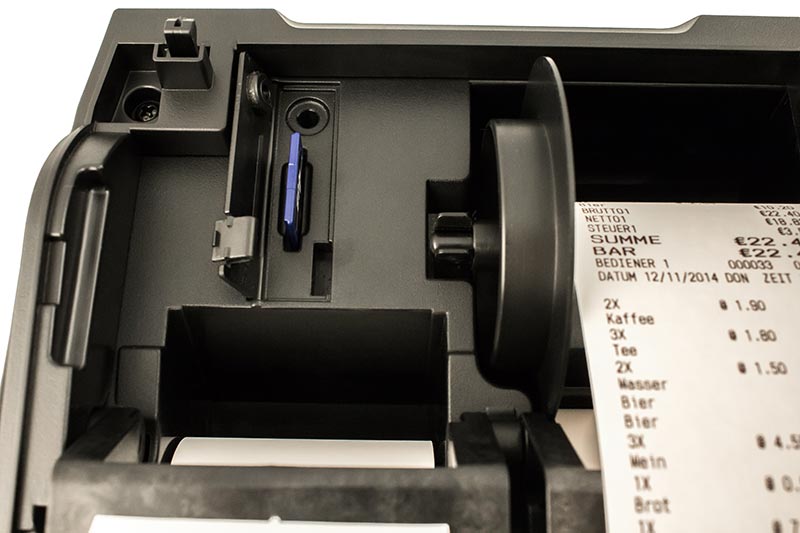 Zur Programmierung, Datensicherung und Erfüllung der gesetzlichen Auflagen ist die ER-900er Serie mit einem SD-Kartenslot ausgestattet, der so entwickelt und positioniert ist, dass er vor unberechtigtem Zugriff geschützt ist.